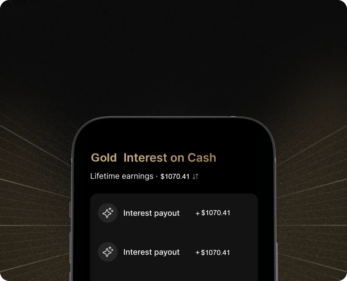已在 Lead Bank 结清的现金可产生利息。当前利率为 3.3%,可能调整。您可选择以黄金或美元收取利息。Lead 与平台的黄金计划、产品或服务无关联。并非在所有州可用。可能收取费用。请查阅服务条款了解资格限制及更多详情。